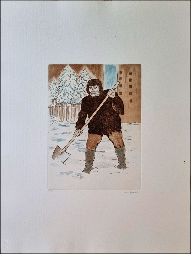MIGNECO GIUSEPPE Messina 1903 – Milano 1997 "Senza titolo" Incisione su cartoncino cm 60×80. Firmata sul fronte in basso a destra, tiratura 33/120 e timbro a secco a sinistra.