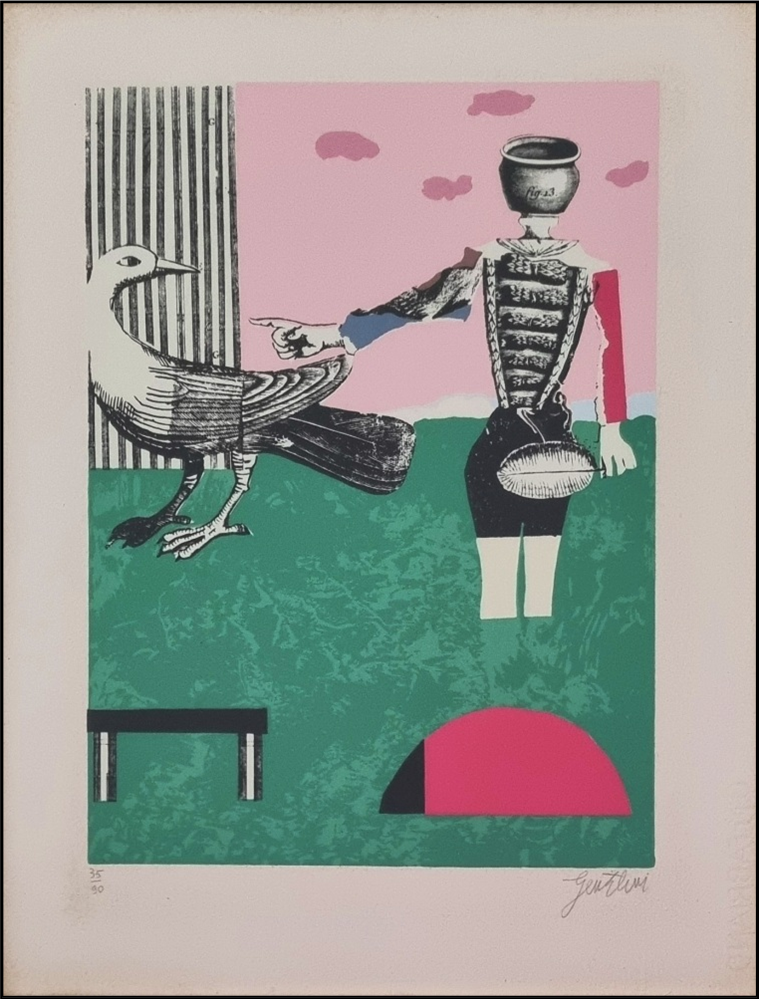 GENTILINI FRANCO Faenza 1909 – Roma 1981 "Senza titolo" Litografia su carta cm 32×42. Firmata sul fronte in basso a destra, tiratura 35/90 a sinistra.