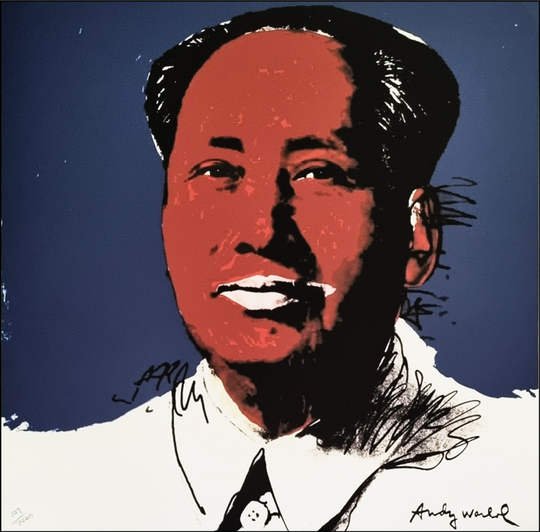 WARHOL ANDY Pittsburgh 1928 – New York 1987 "Mao Tse-tung" Riproduzione litografica offset su cartoncino cm 60×60. Firmata in stampa sul fronte in basso a destra, tiratura a matita a sinistra. Sul retro timbro Edizioni CMOA e ologramma di autenticità.