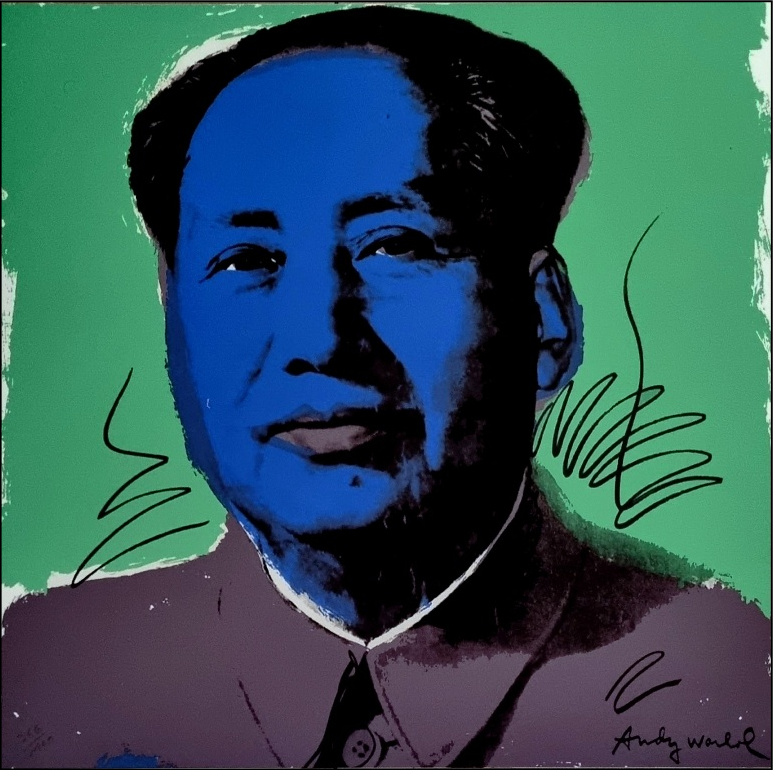WARHOL ANDY Pittsburgh 1928 – New York 1987 "Mao Tse-tung" Riproduzione litografica offset su cartoncino cm 60×60. Firmata in stampa sul fronte in basso a destra, tiratura a matita a sinistra. Sul retro timbro Edizioni CMOA e ologramma di autenticità.