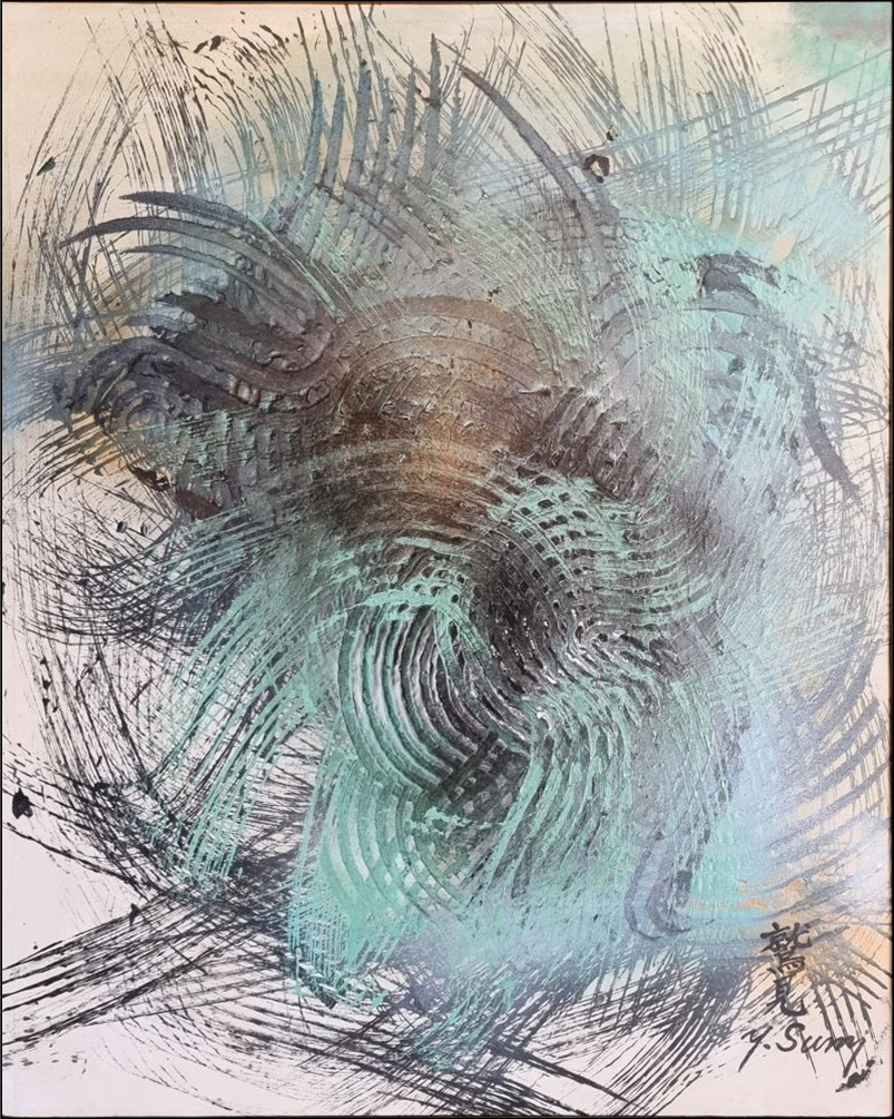 SUMI YASUO Giappone 1925 – 2015 "Senza titolo" Inchiostro, smalto e lacca spray su tela cm 72,8×91,1 del 1986. Firmato sul fronte in basso a destra. Certificato di autenticità su foto a cura dell’archivio generale dell’Artista.