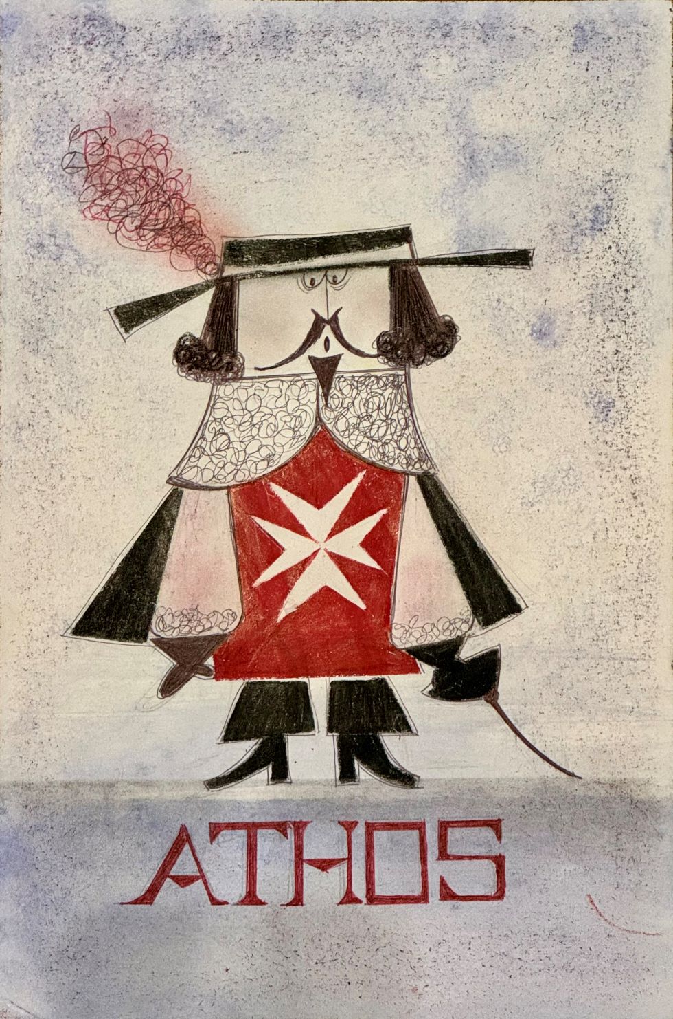 PASCALI PINO Bari 1935 – Roma 1968 “Athos” Tecnica mista su cartone pressato cm 19,7×29,9. Intitolata sul fronte in basso al centro. Al verso firma per provenienza a cura di Sandro Lodolo. Opera archiviata presso l’Archivio dell’Opera Grafica di Pino Pascali.