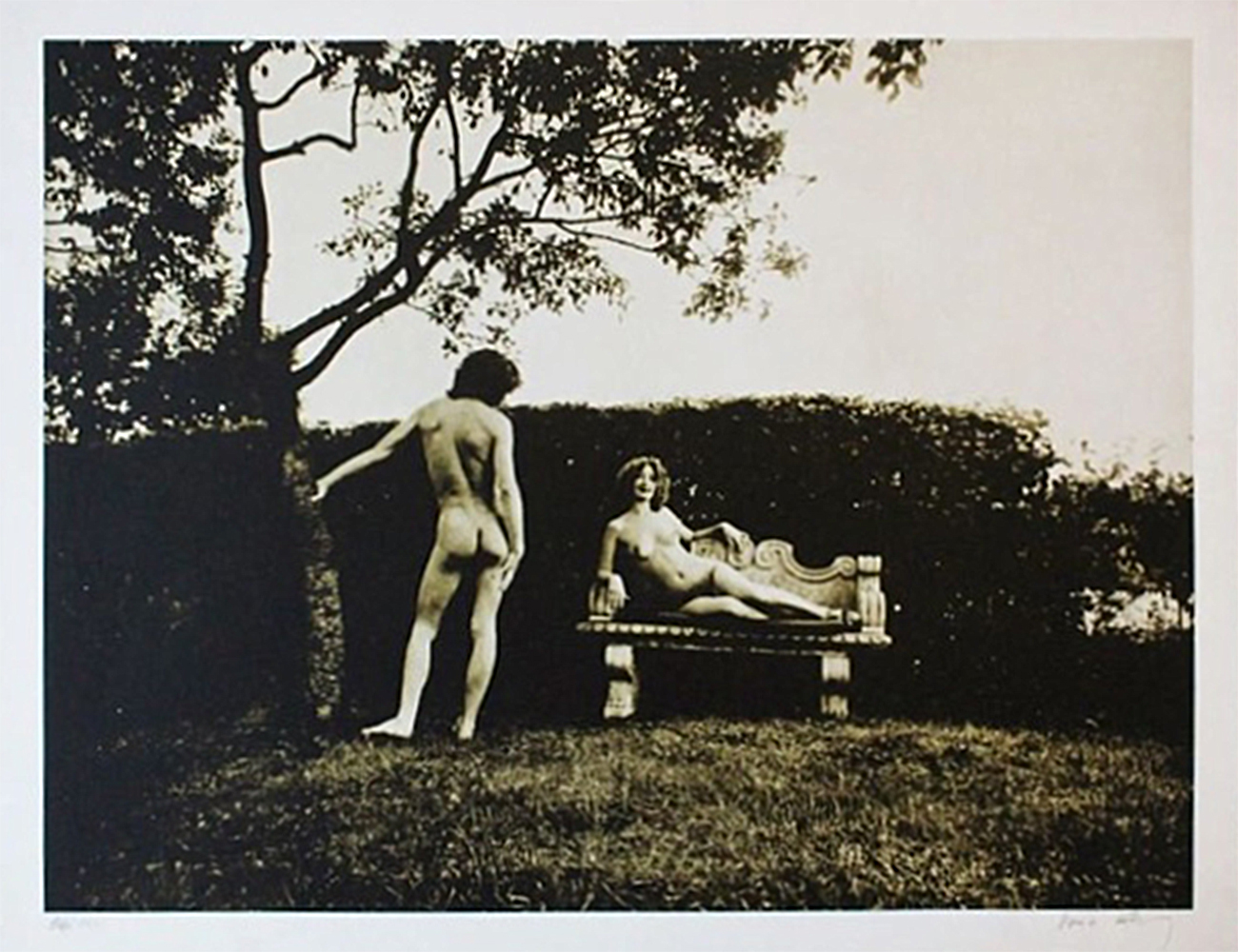 SZEKESSY KARIN Germania 1939 – 2010 "Adamo ed Eva" Calotipia in verde oliva scuro, su cartoncino cm 69×54 (piano), cm 63×48 (display), del 1970. Firmata e numerata a mano. Edizione di 100 esemplari.