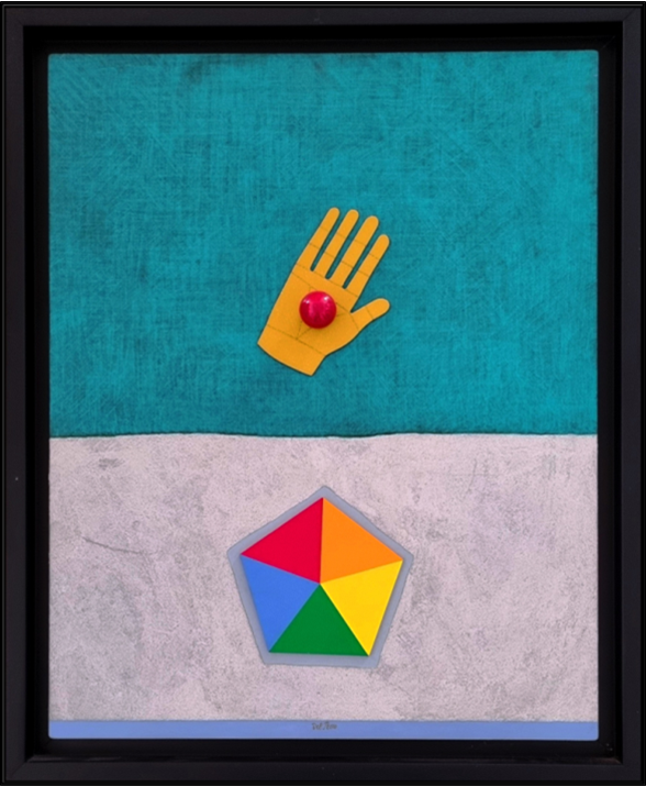 DEL PEZZO LUCIO Napoli 1933 – Milano 2020 "Una nota dal profondo" Collage, acrilico, sabbia e smalto su legno cm 60×75, degli anni ’90. Sul retro reca titolo, firma, tecnica e misure. Autentica su foto a cura del Maestro.