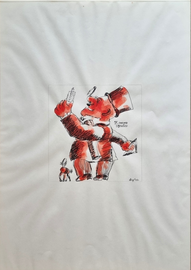 BORGHESE FRANZ Roma 1941 – 2005 "Il nervoso sognatore" Acquerello e tecnica mista su carta cm 35×50. Firmato sul fronte in basso a destra, intitolato sul margine destro. Provenienza Studio Borghese.