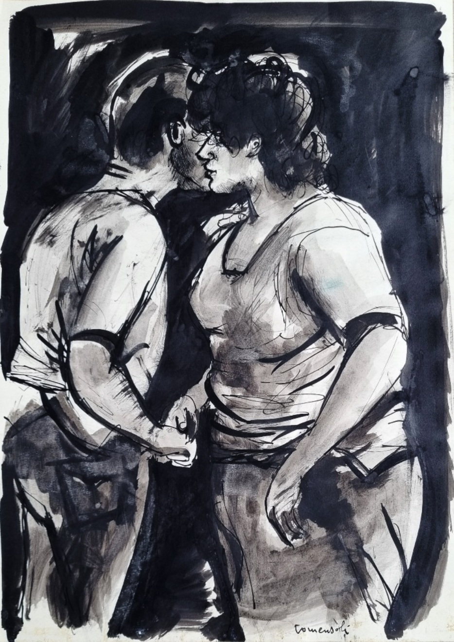 COMENSOLI MARIO Lugano 1922 – Zurigo 1993 "Commiato" China acquerellata su cartoncino cm 30×42. Firmata sul fronte in basso a destra.
