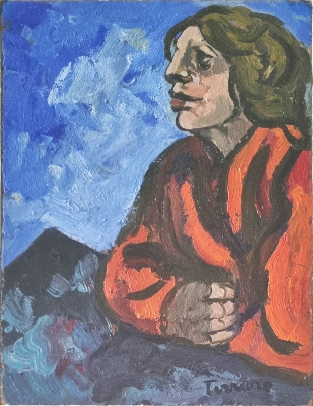 TERRUSO SAVERIO Monreale 1939 – Milano 2003 "L’attesa" Olio su tavola cm 15×20 del 1997. Firmato sul fronte in basso a destra. Al verso firma per autentica. Archivio su foto a cura dell’Archivio Generale delle opere di Terruso.