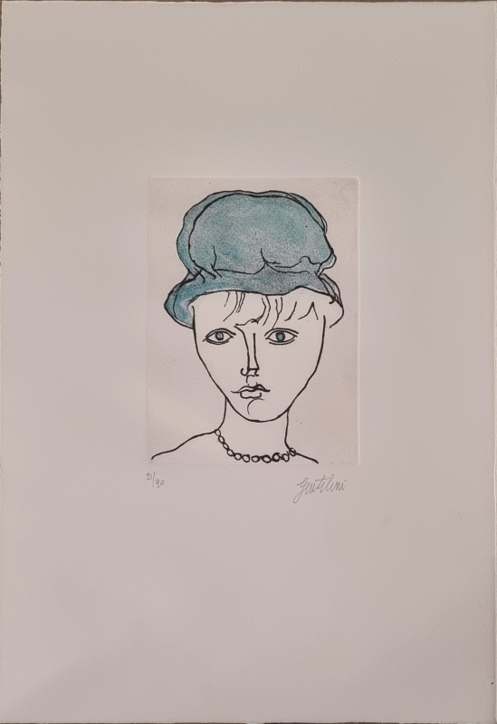 GENTILINI FRANCO Faenza 1909 – Roma 1981 "Senza titolo" Incisione serigrafica su cartoncino cm 35×51, disegno cm 15×21. Firmata a matita sul fronte in basso a destra, tiratura 21/90 a sinistra. Facente parte della Cartella "Canto Ventesimottavo Orlando Furioso".