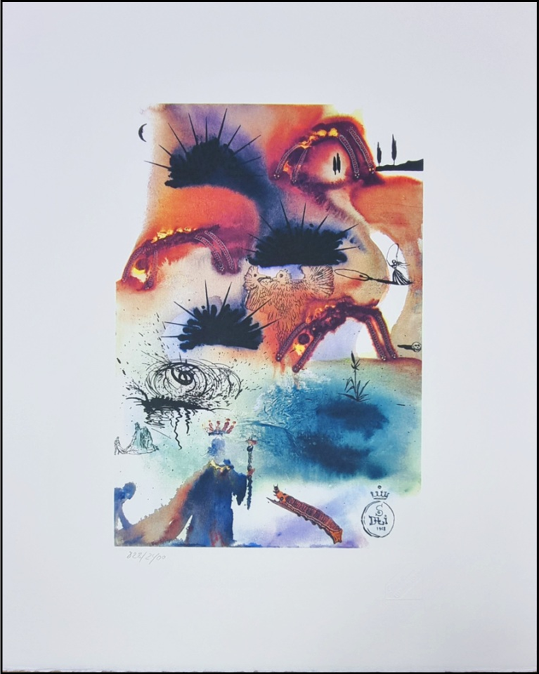 DALI’ SALVADOR Spagna 1904 – 1989 "Senza titolo" Litografia offset su carta cm 48×60. Firma in stampa sul fronte in basso a destra, tiratura a sinistra. Timbro a secco "Dalì Edition Levine & Levine".