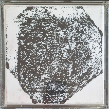 MASI PAOLO Firenze 1933 "Senza titolo" Acrilico su tela cm 20×20 del 2000. Firmata e datata al retro. Contenuta in teca di plexiglass. Autentica su foto a cura del Maestro.