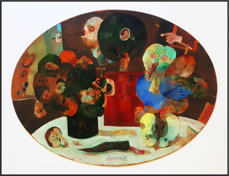 POSSENTI ANTONIO Lucca 1933 – 2016 "Senza titolo" Olio su tavola cm 42×30 (misura dell’ ovale) del 2000, firmato sul fronte in basso al centro e sul retro. Autentica ed archiviazione su foto a cura dell’archivio galleria Fantasio & Joe di Lucca. Certificato di garanzia di altra casa d’aste.