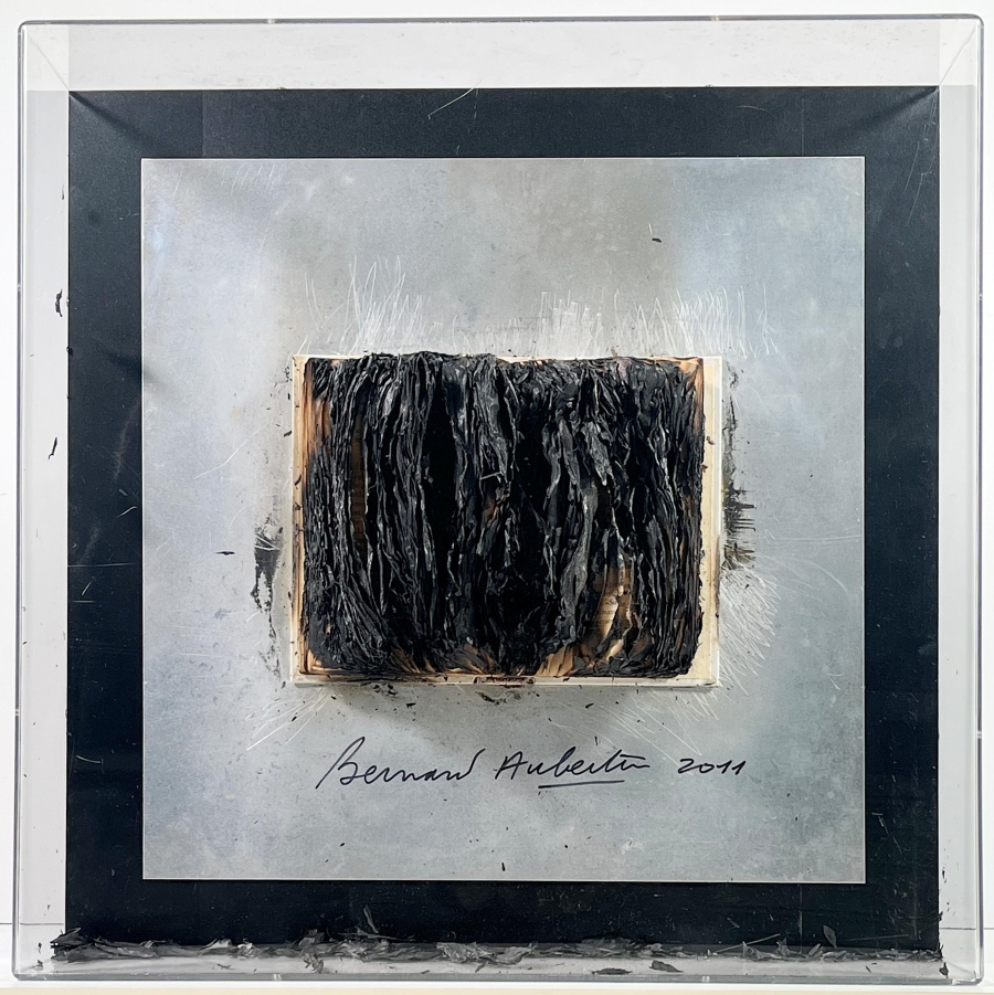 AUBERTIN BERNARD Francia 1934 – Germania 2015 "Libro bruciato" Libro bruciato su lastra di alluminio cm 40×40 del 2011. Firmato e datato sul fronte in basso al centro. Opera pubblicata sul catalogo della mostra "Oeuvres Recentes" a pag. 115. Archivio su foto a cura della Rosenberg.