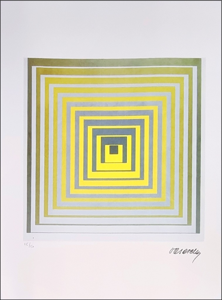 VASARELY VICTOR VASARELY VICTOR Ungheria 1906 - Parigi 1997 "Vonal SZS" Stampa firmata in lastra su carta fine art gr. 300, cm 28x38. Firma in stampa e timbro a secco sul fronte in basso a destra, numerazione a matita 116/150 a sinistra. Certificato. |