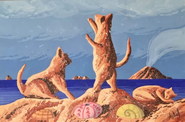 APHEL FABIO Cavalese (TN) 1957 “Gatti” Olio su tavola cm 30×20. Firmato sul fronte in basso a destra. Al verso firma, titolo e numero d’archivio.