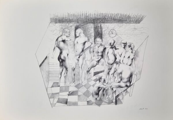 ATTARDI UGO Sori 1923 – Roma 2006 “Bagno turco II” Riproduzione litografica di opere eseguite dal Maestro, cm 49×34. Firmata e datata sul fronte in basso a destra.