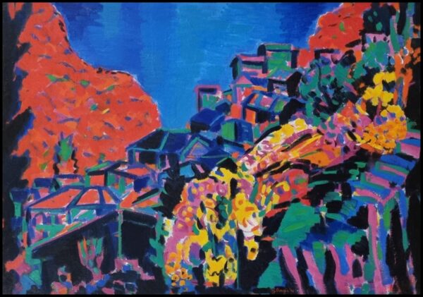 BORGIA GIANCARLO Milano 1958 – Firenze 2002 “Autunno” Olio su tela cm 100×70 del 1996. Firmato e datato sul fronte in basso al centro. Sul retro titolo, luogo, data, firma, timbro ed etichetta descrittiva della Galleria d’arte Cafiso. Autentica su foto a cura dell’Artista.