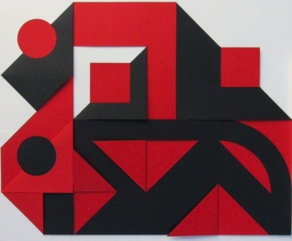 CASTELLANI ENRICO Castelmassa 1930 – Celleno 2017 “Geometria rosso e nero” Multiplo su cartoni Fedrigoni fustellati, piegati e accoppiati, cm 76×56. Firma e tiratura sul fronte in basso a sinistra.