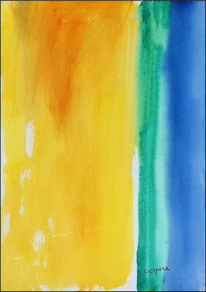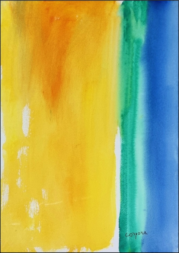 CORPORA ANTONIO Tunisi 1909 – Roma 2004 “Senza titolo” Acquerello su cartoncino cm 36×51. Firmato sul fronte in basso a destra. Autentica su foto a cura del Maestro.