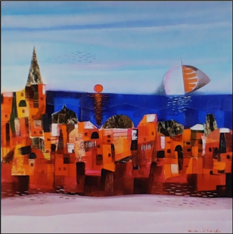 DI CARLO MARIO VITTORIO San Marco in Lamis 1939 – Milano 2015 “Case” Olio su tela cm 100×100. Firmato sul fronte in basso a destra e al retro. Autentica ed archiviazione dell’Artista su foto. Certificato di garanzia di altra casa d’aste.