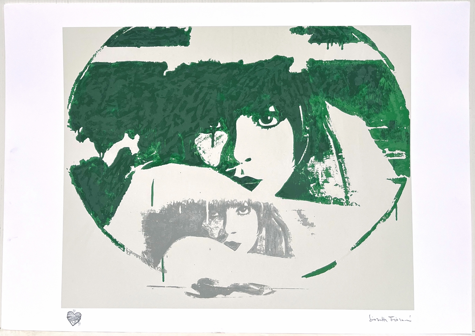 FIORONI GIOSETTA Roma 1932 “Doppio liberty Green” Serigrafia polimaterica e carborundum a colori su carta Hahnemuhle 400gr cm 100×70. Firmata sul fronte in basso a destra, timbro archivio Parise-Fioroni e tiratura in basso a sinistra.