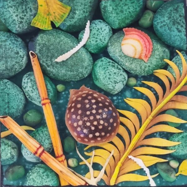 GILARDI PIERO Torino 1942 “Erosaria e palma” Poliuretano espanso cm 30x30x15, in teca di plexiglass. Al verso titolo e firma. Autentica dell’Artista su foto.