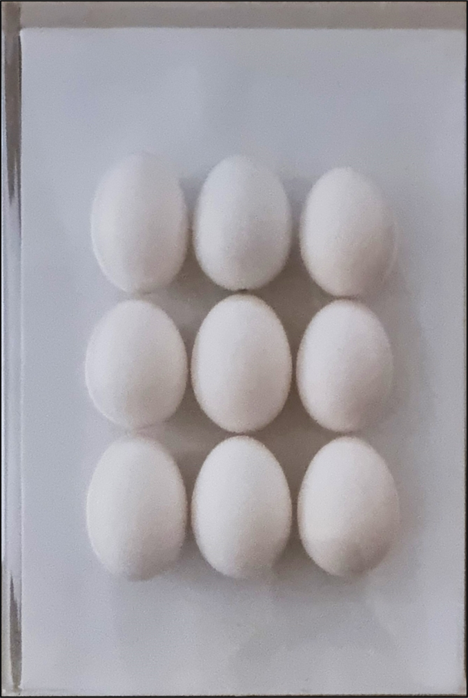 GUSMAROLI RICCARDO Verona 1963 “Senza titolo” Tecnica mista e gusci d’uovo applicati su tela cm 21×31 del 2009. Opera in teca di plexiglass. Firma, data, dedica e timbro “Collezione Roversi” al verso.