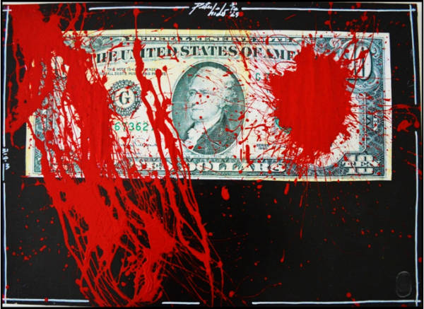 HIDE PETER Tradate 1965 “Blood Money” Tecnica mista su tela in teca di plexiglass cm 70x50x4 del 2013. Firmata, datata ed intitolata al retro. Autentica su foto a cura dell’Artista. Opera esposta presso il Museo Bodini nel 2015.