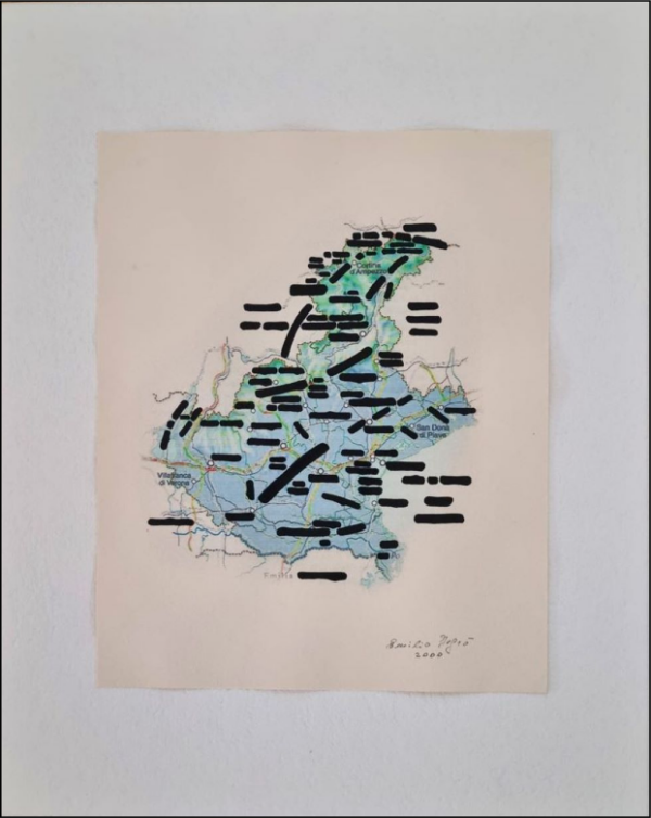 ISGRO’ EMILIO Barcellona Pozzo di Gotto 1937 “Verso Villafranca” Tecnica mista su carta cm 22×27 del 2000. Firmata e datata sul fronte in basso a destra. Al verso titolo, tecnica e misure. Autentica su foto a cura del Maestro.