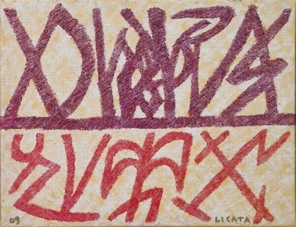 LICATA RICCARDO Torino 1929 – Venezia 2014 “Senza titolo” Olio su tela cm 35×27 del 2009. Firmato sul fronte in basso a destra, datato a sinistra. Autentica su foto a cura del Maestro.