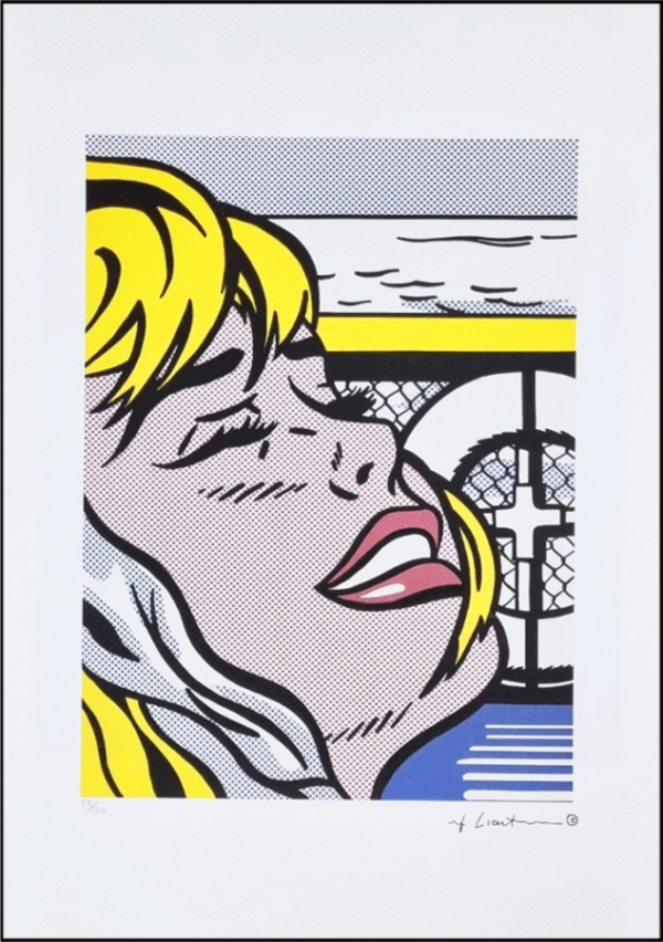 LICHTENSTEIN ROY New York 1923 – 1997 “Senza titolo” Riproduzione litografica offset cm 35×50. Firma in stampa sul fronte in basso a destra, tiratura a sinistra. Sul retro ologramma di autenticità.