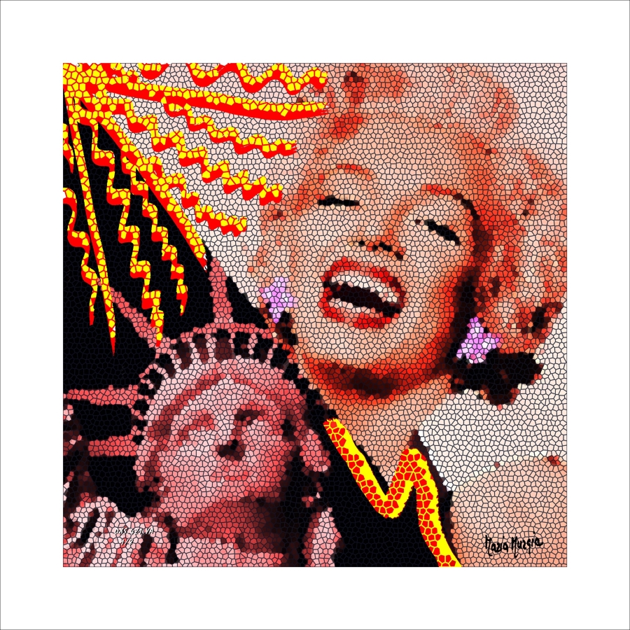 MURGIA MARIA Sassari 1935 “Serie Pop Art: Marilyn Monroe” Elaborazione digitale stampata su carta fotografica satinata Fuji 270g, cm 50,5×51 del 2024. Firmata sul fronte in basso a destra, tiratura 1/8. Autentica su foto a cura dell’Archivio delle opere digitali di Maria Murgia.
