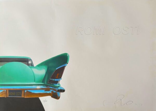 OSTI ROMI Rovigo 1956 “Senza titolo” Serigrafia su cartoncino cm 101×72. Firmata sul fronte in basso a destra, tiratura X/XX a sinistra.