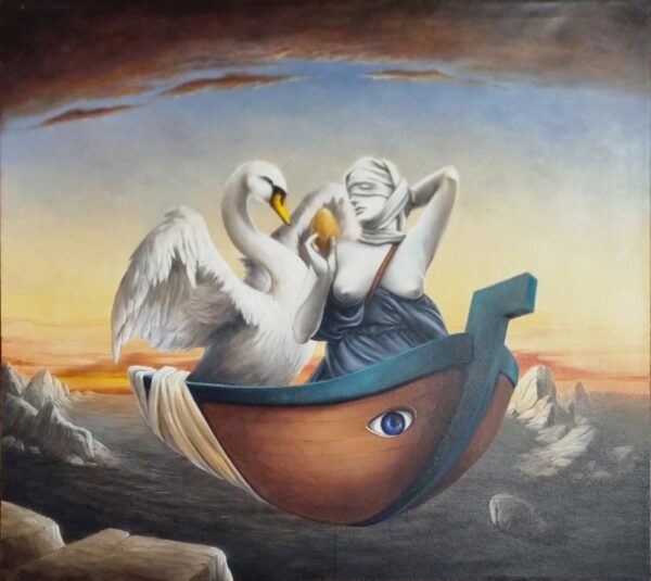 PALUMBO CIRO Zurigo 1965 “Giochi d’amore” Olio su tela cm 90×80 del 2019. Al verso firma, titolo e timbro descrittivo a cura dello Studio d’Arte Palumbo. Certificato di autenticità a cura della 7ettanta 6 Art srl.
