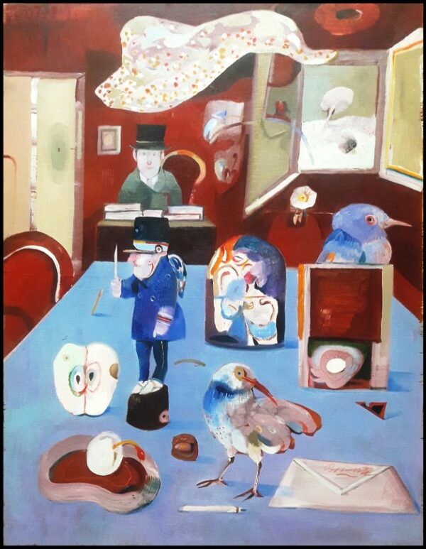 POSSENTI ANTONIO Lucca 1933 – 2016 “Senza titolo” Olio su tavola cm 51×67 del 2000. Firmato sul fronte in basso a destra e sul retro. Autentica ed archiviazione su foto a cura del Maestro e della galleria Fantasio & Joe di Lucca.