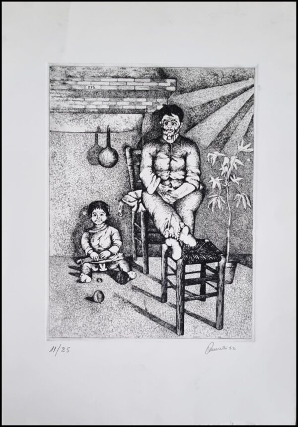 QUARELLI Italia XX sec. “Senza titolo” Incisione su cartoncino cm 35×50 del 1972. Firmata e datata sul fronte in basso a destra, tiratura 11/25 a sinistra.