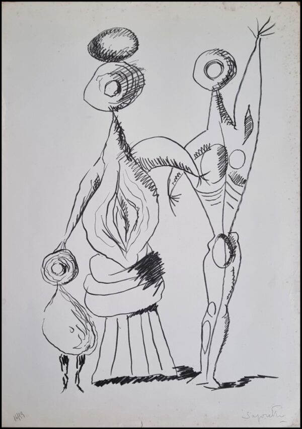 SAPORETTI ADOLFO Ravenna 1907 – Milano 1974 “Senza titolo” Litografia cm 50×70. Firmata sul fronte in basso a destra, tiratura 16/99. Sul retro timbro di autenticit? a cura dell’artista. (Presenta picole mancanze della carta e fioriture).