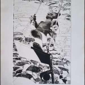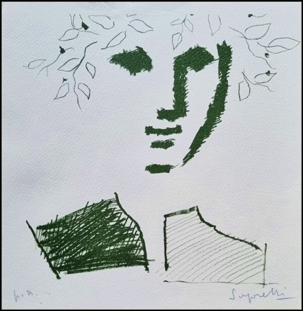 SAPORETTI ADOLFO Ravenna 1907 – Milano 1974 “Volto di uomo” Litografia su cartoncino cm 23×24. Firmata sul fronte in basso a destra, tiratuta P.A. a sinistra.