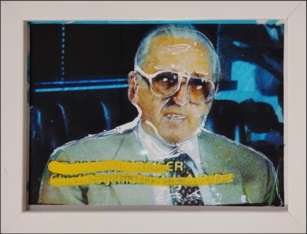 SCHIFANO MARIO Libia 1934 – Roma 1998 “Martin Reijer, lo psichiatra” Tecnica mista su foto ritoccata a smalto cm 18×13 del 1990-97. Certificato di autenticità ed archiviazione a cura della Fondazione Mario Schifano. Certificato di autenticità di altra galleria. Opera pubblicata sul Catalogo “Mario Schifano Fotografie ritoccate 1985-1997”.