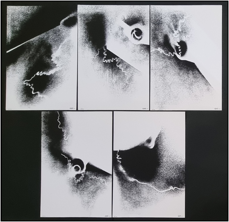 SOBRERO ETTORE Torino 1924 – Milano 2014 “I segni del vento dell’orsa” Cartella contenente n. 5 serigrafie cm 32×47 del 1975. Firma, data e timbro a secco in basso a destra, tiratura 66/100 a sinistra.