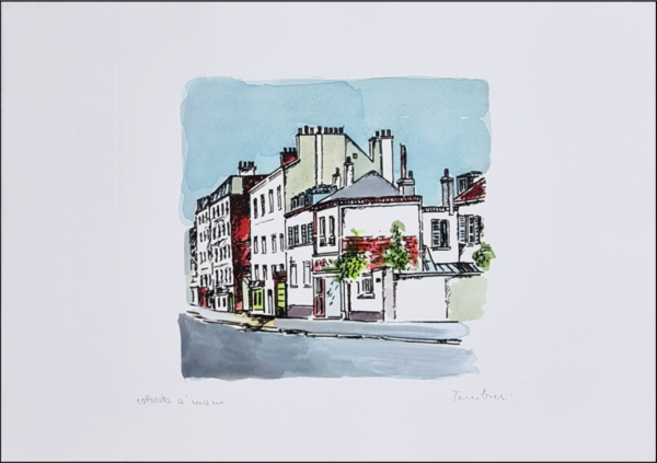 TAMBURI ORFEO Jesi 1910 – Parigi 1994 “Senza titolo” Incisione serigrafica acquerellata a mano, su carta pregiata, cm 50×35, pezzo unico. Firmata sul fronte in basso a destra, dicitura “ritoccata a mano” a sinistra.