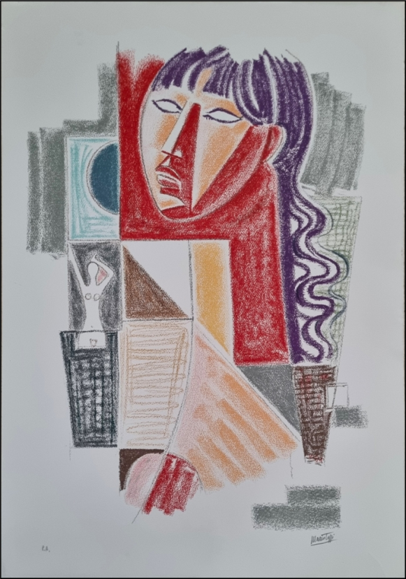 TOZZI MARIO Fossombrone 1895 – Francia 1979 “Composizione con figura” Litografia su cartoncino cm 50×70. Firmata sul fronte in basso a destra, tiratura P.A. a sinistra. Certificato di autenticità a cura di Grafica d’Arte Lombardi.