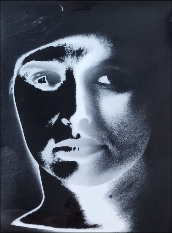 VANNIEUWLANDT JULIEN 1928 – 2020 “Magnifica solarizzazione di un volto femminile” Foto in stampa ai sali d’argento cm 27,5×37,5. Timbro dello studio dell’Artista al retro.