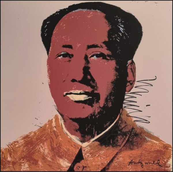 WARHOL ANDY Pittsburgh 1928 – New York 1987 “Mao Tse-tung” Riproduzione litografica offset su cartoncino cm 60×60. Firmata in stampa sul fronte in basso a destra, tiratura a matita a sinistra. Sul retro timbro Edizioni CMOA e ologramma di autenticità.